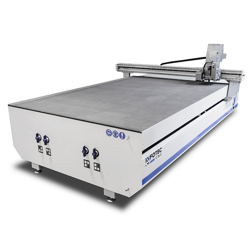 E-Cut posiada bardzo przyjazne oprogramowanie, które pozwala w prosty sposób zaimportować projekt CAM bezpośrednio do urządzenia i od razu rozpocząć produkcję. Nie wymaga to pośrednich rozwiązań, które często są kosztowne i wydłużają cały proces projektowania o godziny, dni, tygodnie. Alternatywą dla wielkoformatowego InfoTEC 3121 E-Cut jest mniejszy ploter tnący CNC InfoTEC 1216 C-Cut czy automatyczny cutter InfoTEC 3025 C PLUS do zastosowań przemysłowych.
