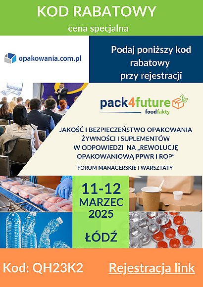 Zapraszamy na pierwsze Forum Managerskie i Warsztaty - Jakość i bezpieczeństwo opakowania żywności i suplementów. W odpowiedzi na „Rewolucję opakowaniową PPWR i ROP” - Pack4Future FoodFakty