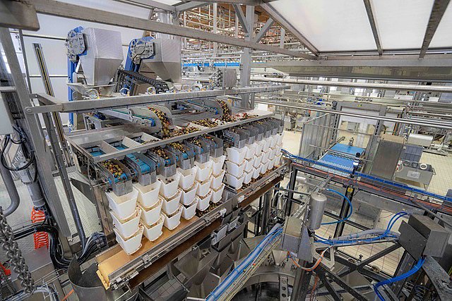 W menù każda waga obsługuje różnorodne lepkie i delikatne produkty, w tym karczochy, młodą cebulę, grzyby, suszone pomidory, oliwki i owoce morza. System dystrybucji z lejkiem wahliwym automatycznie przenosi produkt do podajników taśmowych za pomocą przedłużonego ramienia, które porusza się po górnej części wagi. Czujniki nad każdym lejem zbiornika monitorują ilość produktu i w razie potrzeby uzupełniają jego ilość.