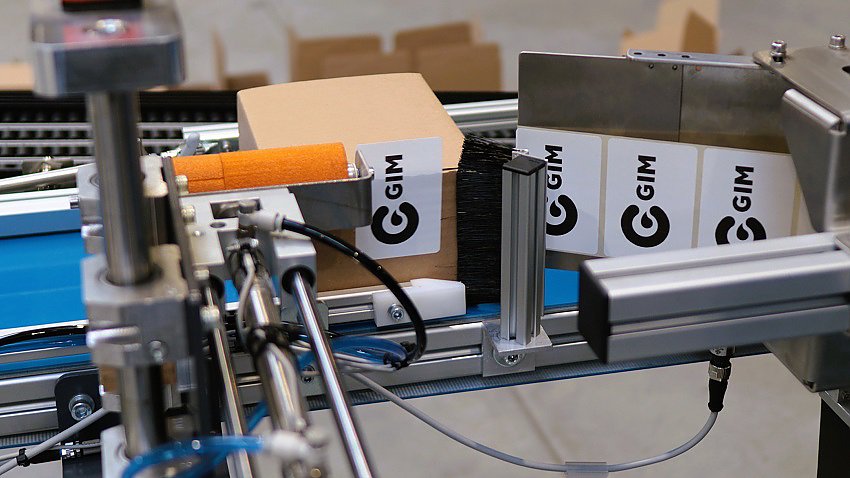 Rys. 4: Naklejanie etykiety na pudełko przy pomocy dedykowanego aplikatora