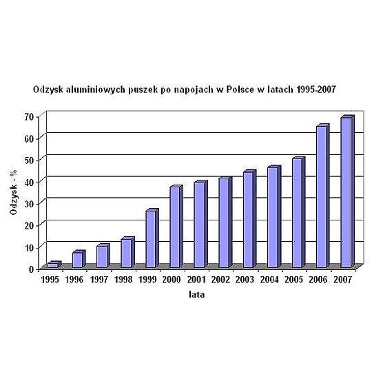 Poziom recyklingu puszek w Polsce jest bardzo wysoki - osiąga niemal 70%. Nie bez znaczenia jest tu fakt przekroczenia średniego europejskiego poziomu recyklingu, który w 2006 wyniósł 58%. Obecnie będzie coraz trudniej utrzymać trend wzrostowy w poziomie odzysku i recyklingu. Mamy jednak wiele przykładów europejskich pokazujących, iż możliwy jest odzysk przekraczający poziom 90% (np. Szwajcaria, Finlandia).