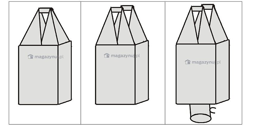 Ostatnim wariantem worków dostępnych w ofercie są BIG BAGI o wymiarach 70x110x120cm. Posiadają one lej spustowy i 4 uchwyty. Najczęściej worki o takich rozmiarach stosowane są do przechowywania materiałów takich jak gruz, pellet, odpady budowlane lub ziemia. BIG BAGI mogą być także powlekane i w takiej wersji używane do pakowania materiałów sypkich.