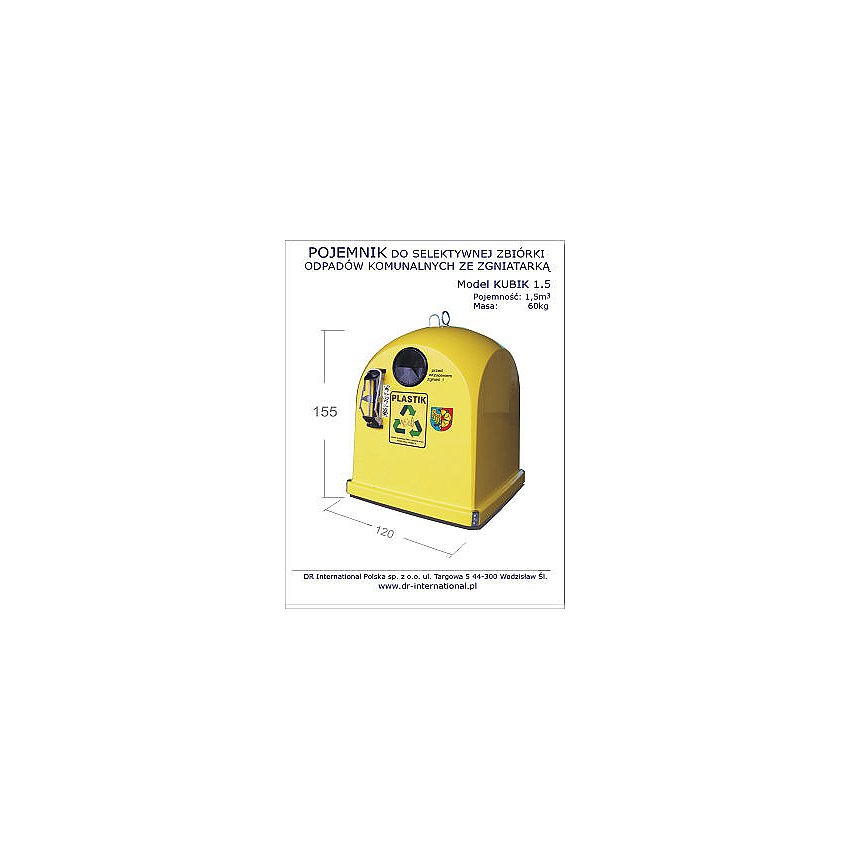Pojemnik model Kubik 1,5 ze Zgniatarką Ecopress do selektywnej zbiórki odpadów komunalnych – plastikowych, to znakomity sposób na: