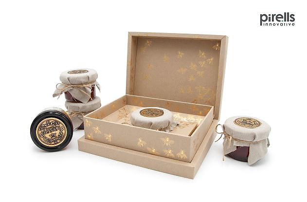 Opakowanie Bee Inspired by Nature jest przeznaczone na miód. Wiemy jak ważną rolę w świecie pełnią pszczoły dlatego na terenie naszej firmy powstała pasieka, którą opiekują się nasi pracownicy. Starannie zbierany miód przelewany jest w słoiczki. Ten wyjątkowy produkt potrzebuje szczególnej i pięknej oprawy. Dlatego powstało oryginalne i innowacyjne opakowanie. Zewnętrzna część jest bardzo minimalistyczna, za to wkładka podtrzymująca słoiczek eksponuje i podkreśla wyjątkowość produktu. Opakowanie wykonane jest z surowca, który jest ekologiczny. Jedynym zastosowanym uszlachetnianiem jest złoty hotstamping. Kolor złoty nawiązuje do pięknej barwy miodu. Opakowanie jest doskonałym przykładem tego, że nie trzeba rezygnować z opakowań premium na rzecz ekologii. Obie w parze mogą stanowić doskonałe połączenie. Opakowania nie można nigdzie zakupić, jest ono jedynie wręczane gościom, Klientom i Kontrahentom naszej firmy.